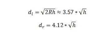 Ces formules montrent la relation entre la hauteur d’une antenne et la distance jusqu’à l’horizon visible.