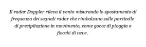 Il radar può rilevare il vento misurando il movimento delle particelle atmosferiche trasportate dal vento. Quando i segnali radar vengono trasmessi e colpiscono queste particelle, il movimento delle particelle provoca uno spostamento nella frequenza dei segnali riflessi a causa dell’effetto Doppler. Questo spostamento di frequenza indica la velocità e la direzione del vento. I radar meteorologici, compresi i sistemi radar Doppler, utilizzano questo principio per tracciare i modelli del vento, identificare fenomeni meteorologici gravi come i tornado e fornire dati preziosi per la previsione e l’analisi del tempo.